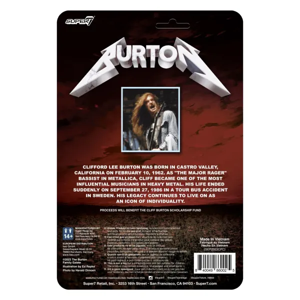 Before His Untimely Death In A 1986 Tour Bus Accident, Cliff Burton Lent The Sound Of His Thunderous Bass To Metallica’S Seminal Album “Master Of Puppets” And Helped Create One Of The Greatest Works In Heavy Metal History! This 3.75” Scale, Articulated Cliff Burton Reaction Figure Features The Legendary Metallica Bassist In Era-Appropriate Torn Jeans, Black T-Shirt And Flannel, And Comes With A Black Bass Guitar. A Collaboration With The Burton Family, Proceeds From This Reaction Figure Will Benefit The Cliff Burton Music Scholarship Fund.