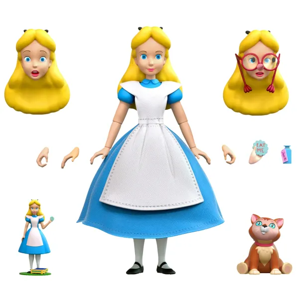 Super7 Has Gone Down The Rabbit Hole In Honor Of The 70Th Anniversary Of Disney’S Alice In Wonderland! This Deluxe Alice Action Figure Comes Loaded With Additional Parts And Accessories, Ready To Reenact Multiple Scenes From The Classic Movie! This 7″ Highly-Articulated, Made-To-Order Figure Comes With A Soft Goods Apron And Skirt, Alternate Heads And Hands, Alice’S Pet Kitten Dinah, A Miniature Version Of Alice, And Additional Iconic Accessories.