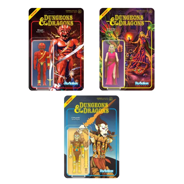 In Dungeons & Dragons, “The Adventure Is Yours!” Super7 Is Celebrating Adventure With The Release Of New Dungeons & Dragons Reaction Figures Inspired By Vintage Cover Art From The Original Fantasy-Quest Roleplaying Game! Choose A Sorceress, An Efreeti, Or A Githyanki To Begin Your Quest Or Collect All Three And Weave A Rich Tapestry Of Excitement And Danger For These Characters To Traverse! With The Dungeons & Dragons Reaction Figures, Your Imagination Is The Only Limit To Your Adventure!