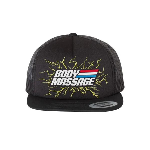 You And G.I. Joe’S Electrical Safety Expert And Combat Masseur, Roadblock, Both Know That There’S No Better Way To Get A Charge Of Energy Than A Good Body Massage! This G.I. Joe “Body Massage” Trucker Hat Comes In Black With A Snapback Strap To Fit A Wide Variety Of Head Sizes And Classic Mesh Rear Construction For Ventilation, It’S Never Been More Comfortable To Rep Your Love Of Body Massages!