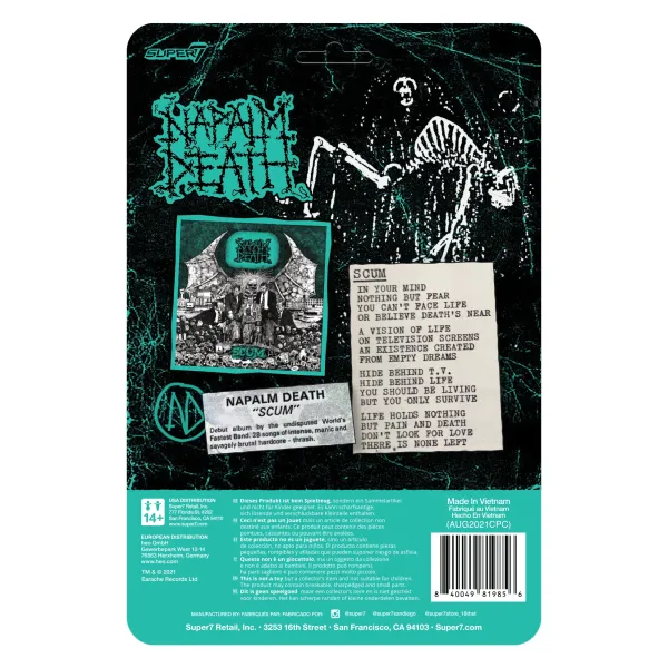 Inspired By The 1987 Debut Album From Grindcore Pioneers Napalm Death! The 3.75″ Scum Demon Reaction Figure Is Encased In A Blister On A Cardback That Mirrors The Influential Album’S Cover. This Aquamarine Colorway Matches The Album’S Third Pressing.