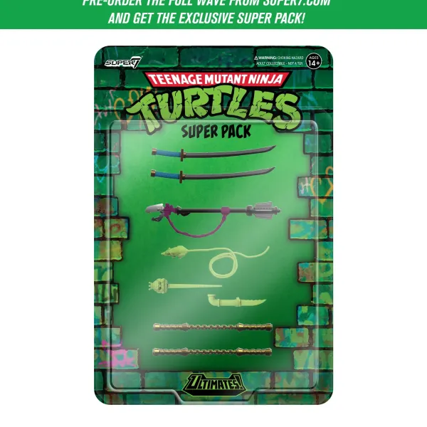 Assemble The Complete Teenage Mutant Ninja Turtles Ultimates! Wave 11 Collection And Receive An Exclusive Super Pack With An Assortment Of Weapons Specific To These Characters! Available Only With The Purchase Of The Full Wave Of Super7 Ultimates! Figures From Super7.Com.