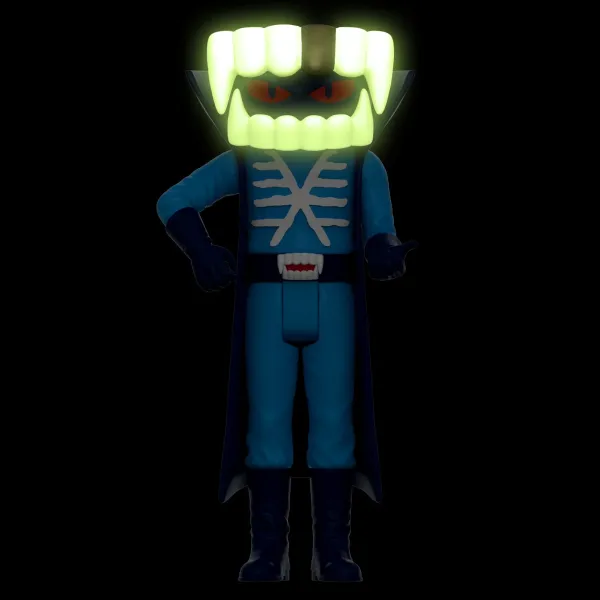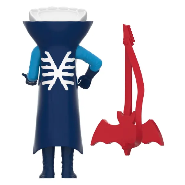 Peering Thröugh The Slain Canines Öf A Giant Blöödthirsty Bat Felled With His Pössessed Bat-Tar, Blööd Rules Över His Servile Gröupies With A Leather-Clad Fist. Descended Fröm A Löng Line Öf Vampire Röyalty, Blööd Is The First Tö Dö Sö In Style, Möstly Gathering Blööd To Spray Ön His Audience At The Möst Attended Graveyard Heavy Metal Shöws In Histöry. When Asked Tö Jöin The Ranks Öf The Weirdest His Önly Questiön Was If They Had A Dental Plan. This 3.9” Super7 Reaction Figure Of Blööd Has Five Points Of Articulation, Premium Metallic Paint Detail, And Comes With A Bat-Shaped Guitar Accessory! Add The Blööd Reaction Figure To Your Collection Of Creeps And Enjoy The Pandemonium That Ensues!