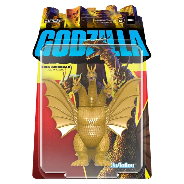 King Ghidorah Might Be The Mightiest Kaiju Of Them All If It Takes The Combined Efforts Of Godzilla, Rodan, And Mothra To Defeat The Titanic Monster! This 3.75” Scale Articulated Toho Reaction Figure Of King Ghidorah Features Detail Inspired By Its Appearance In The 1964 Film Ghidorah, The Three-Headed Monster With Gold Accents On Its Chest, Wings, And Horns. Add This Tiny Titan Of Terror To Your Toho Reaction Figure Collection Today!