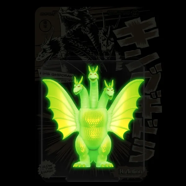 Having Destroyed Venusian Civilization, King Ghidorah Has Set Its Destructive Gaze On Earth And Humanity! This Articulated, 3.75” Scale Sdcc Edition Toho Reaction Figure Of King Ghidorah Is Made Of Glow-In-The-Dark Material And Features Gold Metallic Paint Detail Fit For A King! The Future Looks Of Your Collection Will Look Bright, Day Or Night, With The Sdcc Edition Glow-In-The-Dark Toho Reaction Figure Of King Ghidorah!