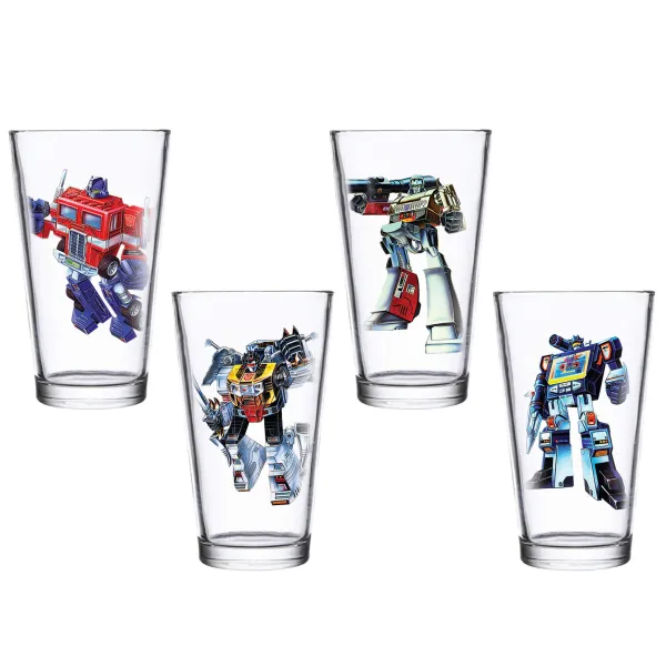 Have A Drink With The Transformers! Each 16 Ounce Pint Glass Measures 5.75-Inches Tall And Comes Individually Boxed.