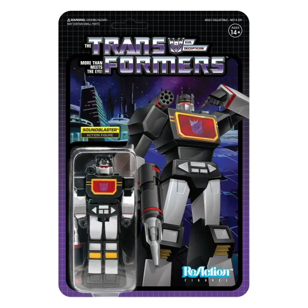 Just When You Thought Soundblaster Couldn’T Become Any More Awesome, Super7 Found A Way! This 3.75” Reaction Figure Black And Red Variant Of Soundblaster – Based On The Headmasters – Gives The Decepticon A More Menacing Appearance And Comes With His Concussion Blaster Gun Accessory. Complete Your Transformers Collection With This Black Friday Exclusive Colorway Of Soundblaster!