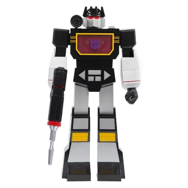 The Resurrected Clone Of Soundwave Following A Fatal Duel, Soundblaster Carries On The Role Of Decepticon Spy And Intelligence Officer In His Absence. Like All Of The Super Cyborg Lineup, This Figure Stands 11” Tall And Features Seven Points Of Articulation Along With A Removable Torso Panel So You Can See The Inner Workings Of This Awesome Transformer. Soundblaster Features A Menacing Dark Color Scheme And Comes With A Removable Cassette That Fits Inside His Chest, As Well As His Shoulder Cannon And Concussion Blaster Accessories. Take Your Transformers Collection To The Next Level With The New Super Cyborg Soundblaster Figure!