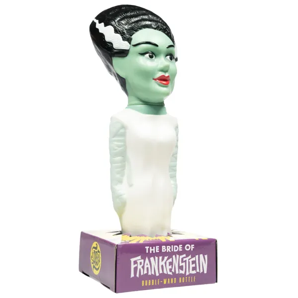 Modeled After The Novelty Bubble Bath Bottles Of The 1960S, This Full Color Edition 10” Universal Monsters Super Soapies Bride Of Frankenstein Bottle Holds 15 Oz Of Soapy Solution For Blowing Bubbles Using The Wand Attached To The Screw-Off Top. Add Technicolor Nostalgia To Your Home With The Whole Collection Of Universal Monsters Super Soapies!