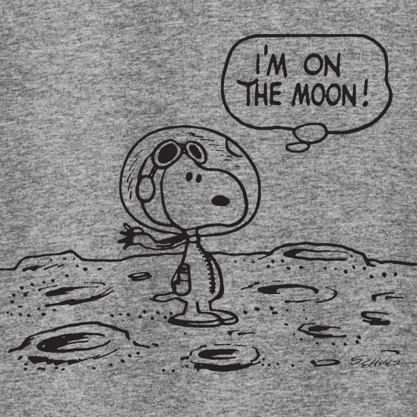 Let Everyone Know (Including That Stupid Cat Who Lives Next Door) That Snoopy Is The First Beagle On The Moon! Inspired By The Vintage Peanuts Comic Strip, This 100% Cotton T-Shirt Features Astronaut Snoopy On The Moon’S Surface Declaring “I’M On The Moon!”. Machine Washable, And Available In Heather Gray, Sizes S-3X.